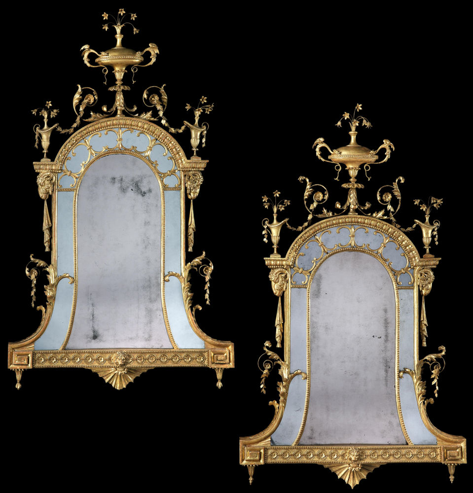 Note: The mirrors retain their original centre plates. One mirror has replacement 18th century border glasses. Both mirror frames have been re-gilded in the past, but still retain some of the original gilding.